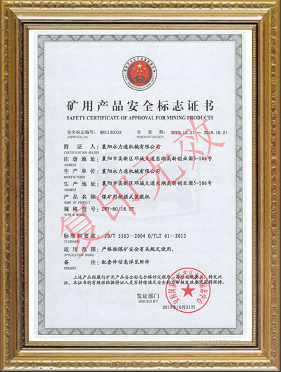 ZWY/80/18.5T礦用安全證書(shū)