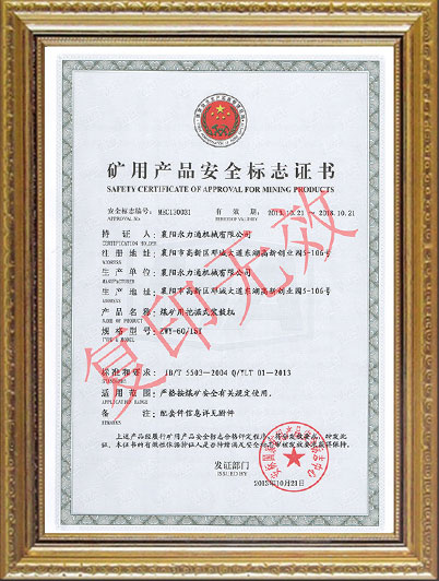 ZWY/60/15T礦用安全證書(shū)