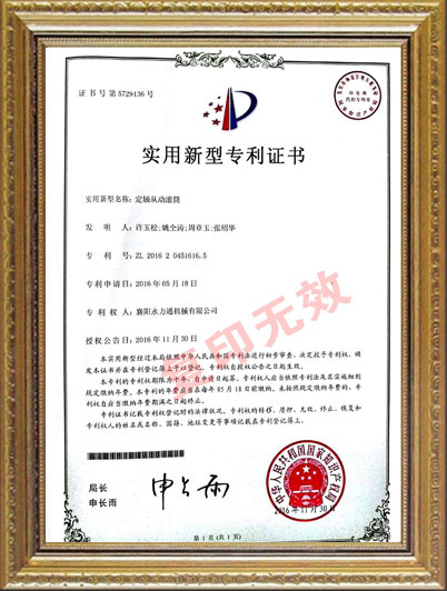 定軸從動(dòng)滾筒實(shí)用新型專(zhuān)利證書(shū)