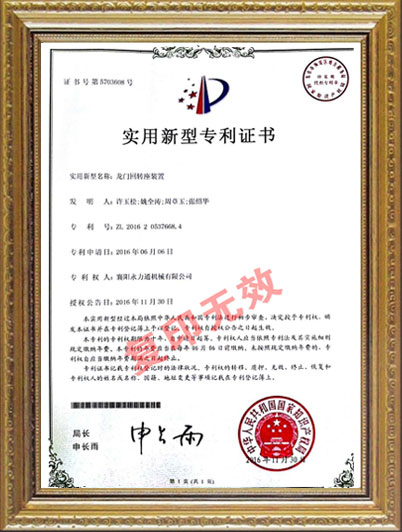 龍門(mén)回轉(zhuǎn)座裝置新型專(zhuān)利證書(shū)